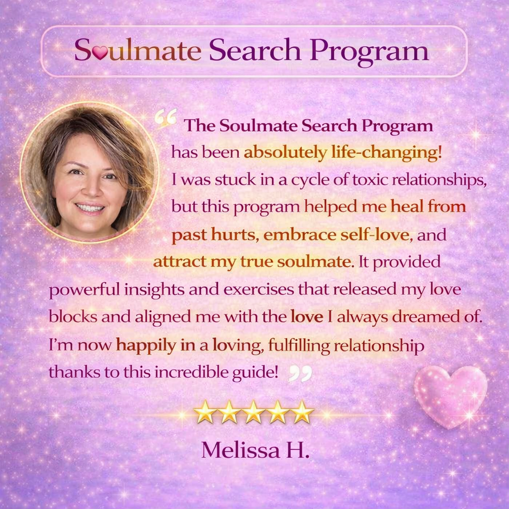The Soulmate Search Program was created to gently guide you back to yourself, heal your heart, and align your energy with the love you truly deserve.