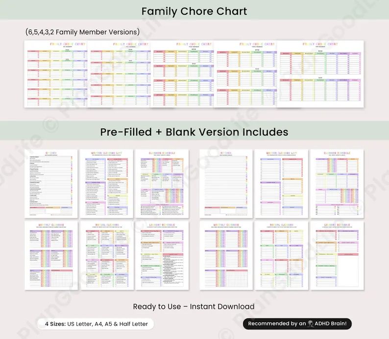 Declutter guides, laundry systems, family chore charts, move-in & move-out checklists